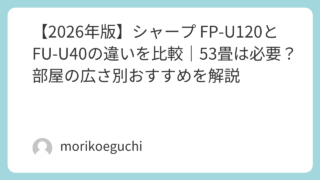 シャープの空気清浄機FP-U120とFU-U40の違いを徹底比較。53畳対応は本当に必要?適用畳数・風量・センサー性能・サイズ・ランニングコスト・口コミ傾向まで解説します。リビング向けか個室向けか、2026年最新視点でわかりやすく紹介。